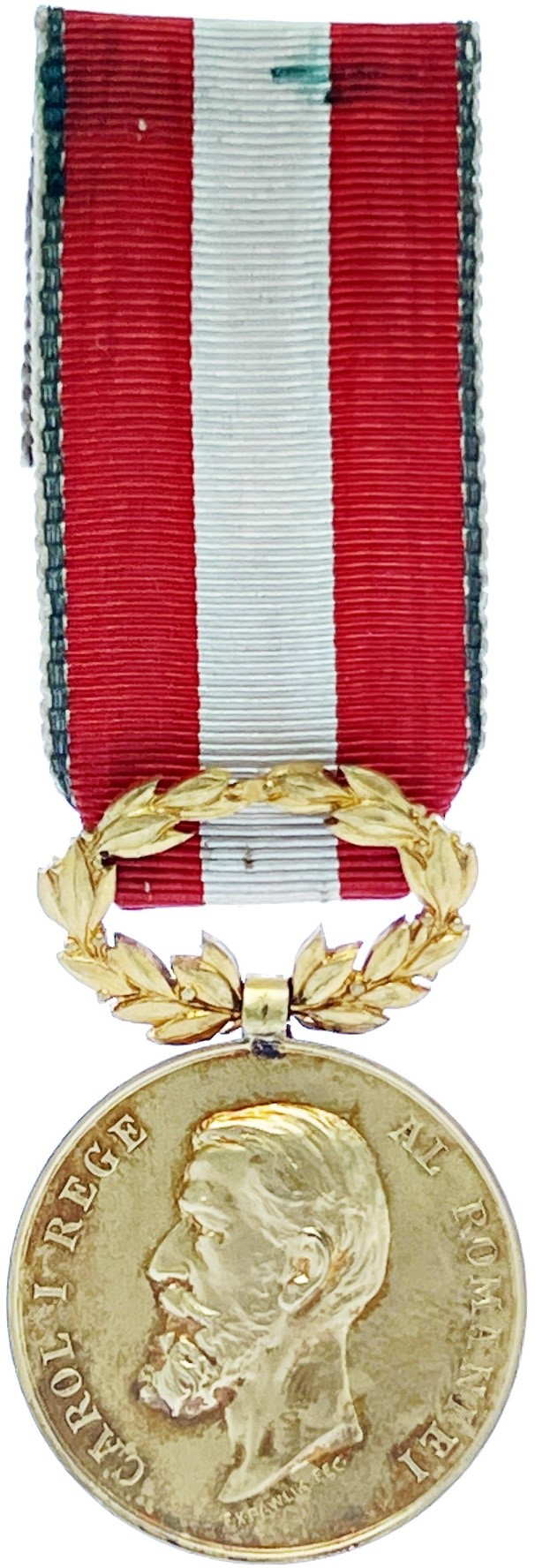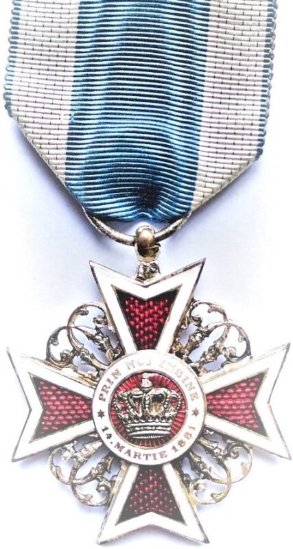 Ordinul „Coroana României” a fost instituit în 10 mai 1881 și avea scopul de a recompensa serviciile aduse statului. Conform Regulamentului Ordinului „Coroana României” nr. 2002 din 6 august 1885 (publicat în „Monitorul Oficial” nr. 103 din 10 / 22 august 1885, p. 2100): „Decorațiunea acestui Ordin este o cruce cu ramuri egale; fiecare ramură e de smalț roșu, având împrejur o dungă albă, între ramuri e cifra regală.