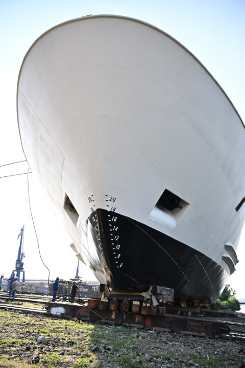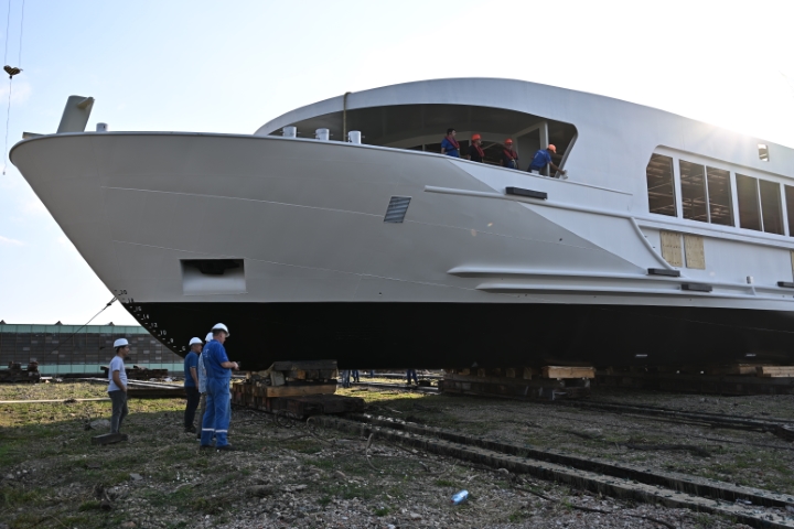 Corpul navei, cu o lungime de 135 metri, o lățime de 11,45 metri, o înălțime de 8 metri și un tonaj de aproximativ 970 tone, va fi transportat în Olanda, la șantierul TeamCo, unde va fi finalizată echiparea completă, beneficiind de expertiza unui șantier modern și recunoscut internațional.