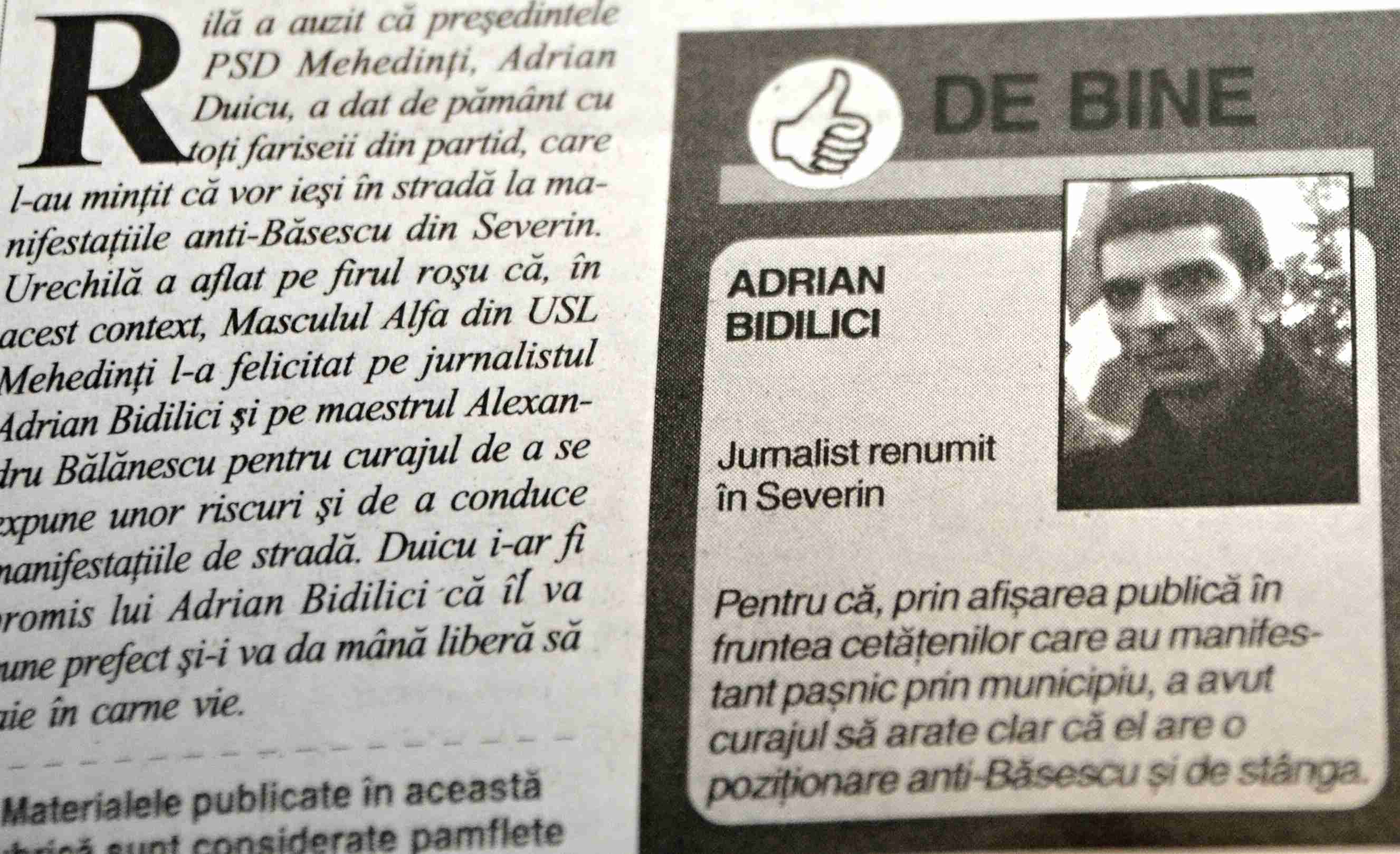 Colegii de la un „regional“ au făcut un „pustiu de bine“ unui jurnalist, dându-i o „labă albă“, ca să zicem aşa, de bine, însă au uitat un singur lucru: respectivul renumit care vrea prefect ar trebui să renunţe la una din cele două alegeri. Dacă nu ştie, să-l sune pe Brăgaru, de la Orşova!