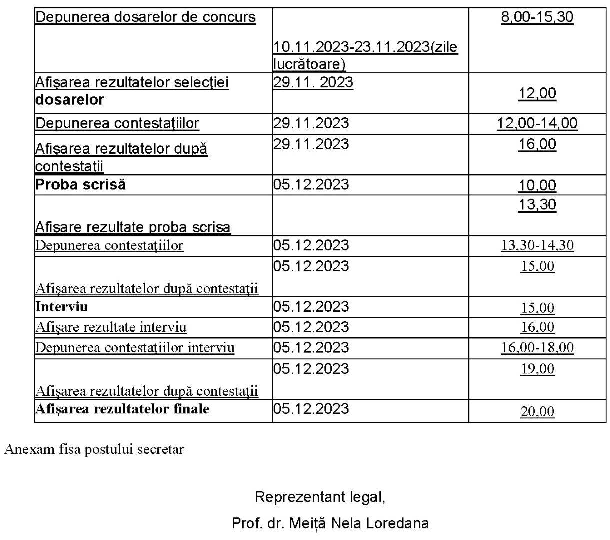 – 05 decembrie 2023, ora 10.00 – proba scrisă;